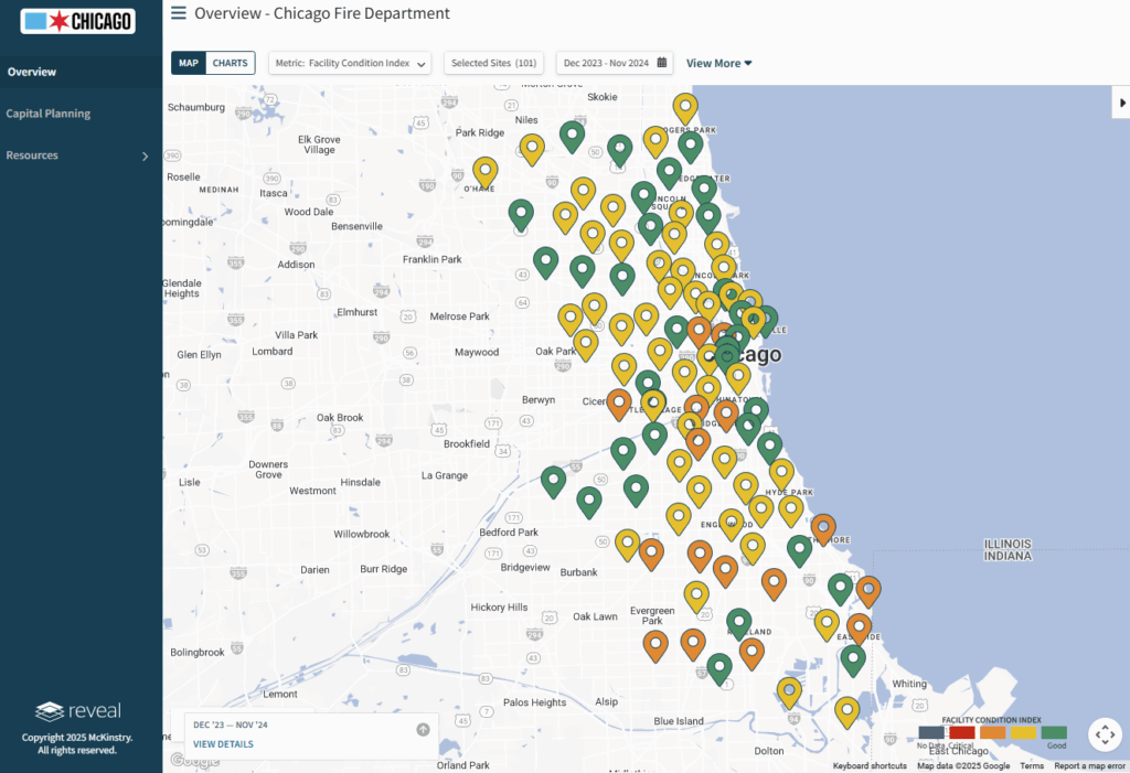 Through this work, the City of Chicago and the Chicago Fire Department now have a centralized, data-rich view of their facilities portfolio—empowering smarter decision-making for capital investments, maintenance planning and long-term infrastructure resilience. McKinstry’s Reveal™ platform, combined with in-field data and immersive 360-degree imagery, provides a scalable digital foundation for CFD and 2FM to manage assets proactively and cost-effectively. This project demonstrates how powerful insights, passionate team members and integrated technology can drive measurable value for essential public services.